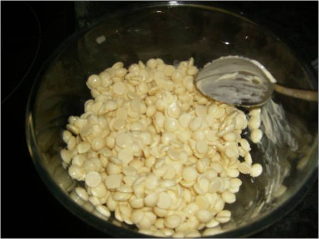 Para el relleno utilice chocolate blanco, en el microondas muy despacio  lo derretí  sacándolo y moviendo varias veces.
