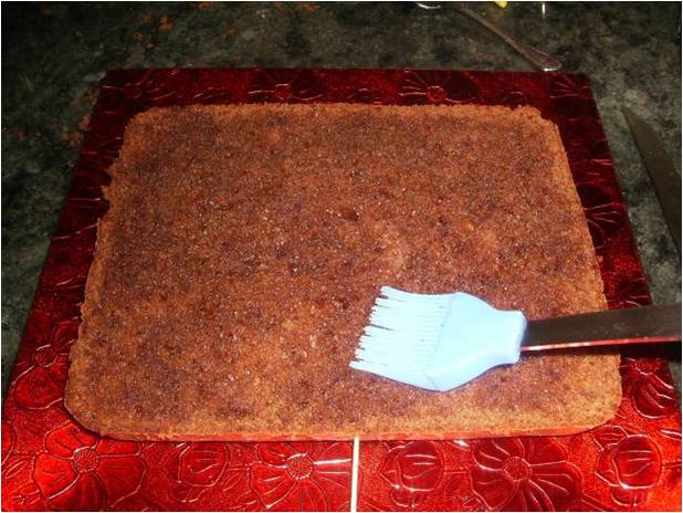 Mojamos el bizcocho con el almíbar sin pasarnos.