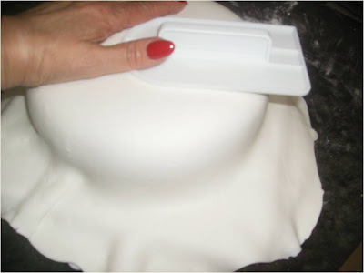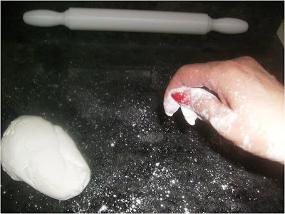 Espolvoreamos la mesa con azúcar glass y con el rodillo estiramos el fondant, dejándolo fino sin que se rompa