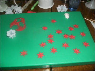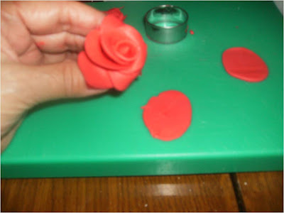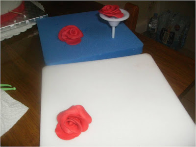 Le he puestos unas rosas de pasta de goma con unas hojas