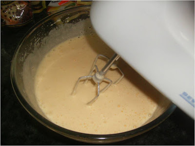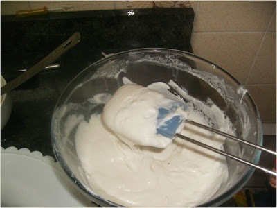Ponemos en un bol los huevos y el azúcar lo los batimos hasta que triplique su volumen y esten blanquecino