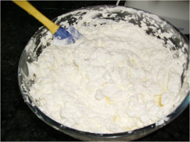 Seguimos batiendo con las varilla y cuando estén casi montada, le añadimos el azúcar poco a poco, dejamos reposar en el frigorífico.