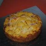 Introducir la tarta en el horno, precalentado a 180 ºC solo por la parte de abajo, y cocerla durante 1 hora. Los últimos 10 minutos, encender el grill para que se dore la tarta.
