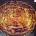 Se pican todas las manzanas menos una y batimos junto al resto de ingredientes en la  batidora. Se vierte sobre un molde untado de mantequilla y la manzana reservada la utilizamos para adornar, cortada en láminas con forma de media luna, la colocamos dando forma sobre la crema.