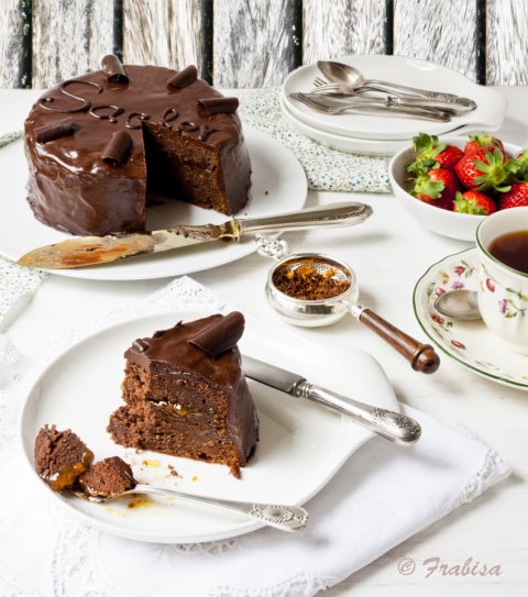 Tarta sacher con mermelada de mango
