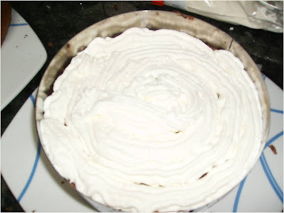 Sobre el disco ponemos una generosa capa de nata con cacao.