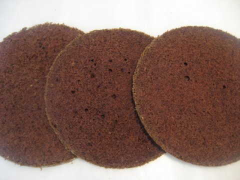 4. Repetir la operación otra vez y terminar bañando la superficie del bizcocho con el chocolate con aceite de oliva (esta mezcla impedirá que se rompa al corte).