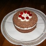 Tartas con bizcocho de chocolate relleno de nata y frutas hay infinidad, son sencillas y cada uno puede hacer la versión que le gusta. Ésta es nominada Selva Negra y es receta tradicional de otras latitudes, y que adopto y adapto en tiempo de cerezas.