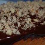Dejaremos enfriar.Prepararemos la cobertura. Derretiremos la mitad de la tableta de chocolate con la nuez de mantequilla en el microondas o al baño Maria y con la ayuda de un pincel de cocina cubriremos la tarta con el chocolate. Dejaremos enfriar.