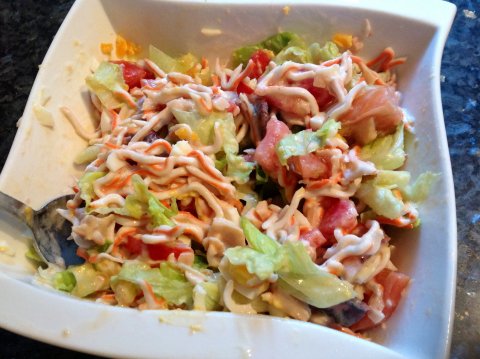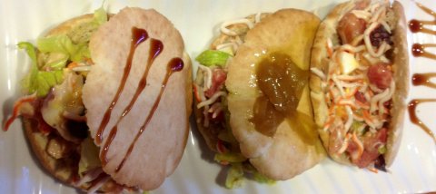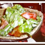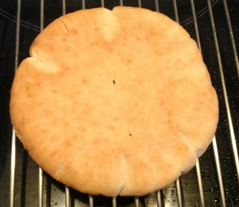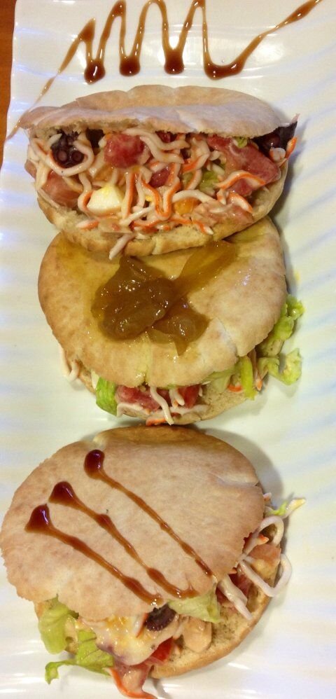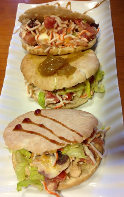 Mezclamos en un bol todos los ingredientes del relleno. Abrimos el pan de pita por la mitad.