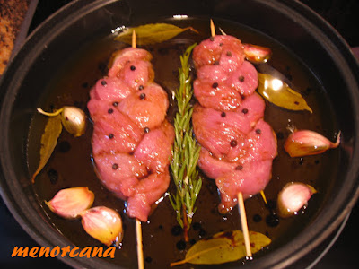 Poner la trenza de solomillo en una cazuela con aceite, los ajos sin pelar, la pimienta, sal, tomillo, laurel y el vinagre.