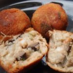 Se baten los huevos, se le añade el perejil y los ajos picaditos, un poco de sal, y se le va añadiendo la harina y el caldo de las quisquillas, poco a poco y la levadura, se traba todo bien hasta que quede una